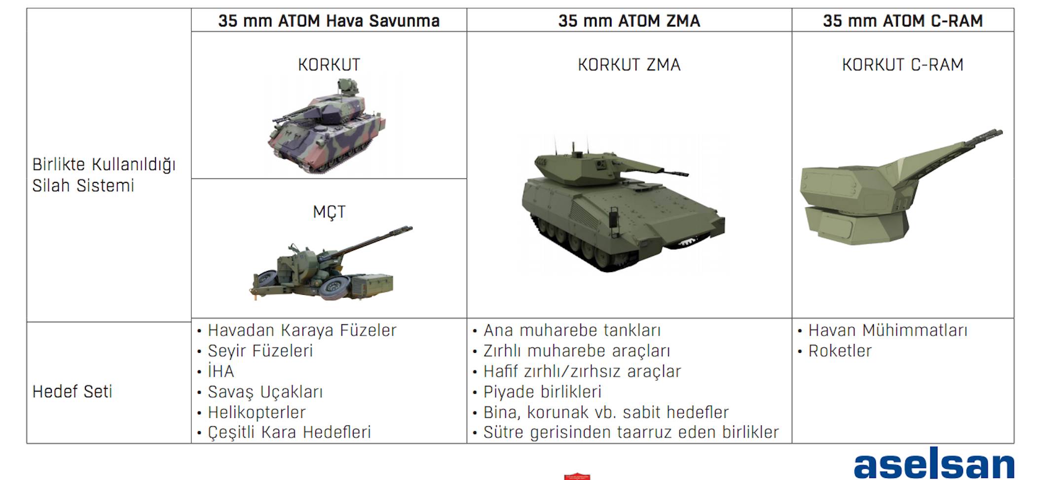ATOM 35 mm Parçacıklı Mühimmat ASELSAN, Tübitak Sage ve MKE tarafından geliştirilmiş dip tapalı akıllı mühimmattır. Kısa mesafede hızlı gelen hedefleri adeta kevgire çeviriyor.