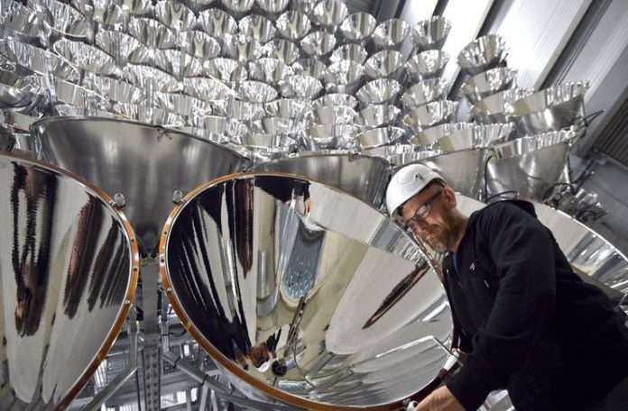 Tüm lambalar ışığı tekil bir nokta üzerinde yoğunlaştırmak üzere çevrildiklerinde düzenek 3.500C derece civarında sıcaklık üretebiliyor (maden eritme ocağından yaklaşık 2-3 kat daha fazla).