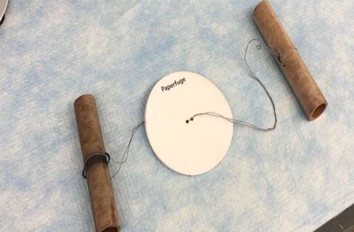 Bilim adamları normal şartlarda maliyeti binlerce doları bulan Santrifüj Cihazlarına ucuz bir alternatif keşfetti. Sadece kağıt ve ip kullanılarak üretilen bu cihazla, gelişmekte olan ve medikal malzemeye ulaşmakta güçlük çeken ülkelerde sıtma gibi hastalıkların testlerinin yapılması hedefleniyor.
