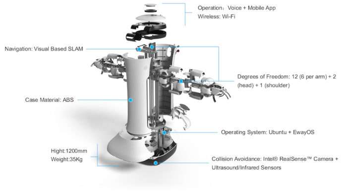 Robotik şirketi Ewaybot, Moro’yu araştırma laboratuvarları ve üniversiteler için insansız bir asistan olarak geliştirdi ve halen Çin genelinde birkaç okulda kullanılıyor. Moro 1.2 metre uzunluğunda ve yaklaşık 35 Kilo ağırlığında, kollarında altı eklem noktası var. Her bir kol kalemden ağır bir şişeye kadar birçok şeyi tutabilen üç parmaklı ellere sahip. Moro, Alexa’da olduğu gibi sesli mesajlaşmaya tepki veriyor.