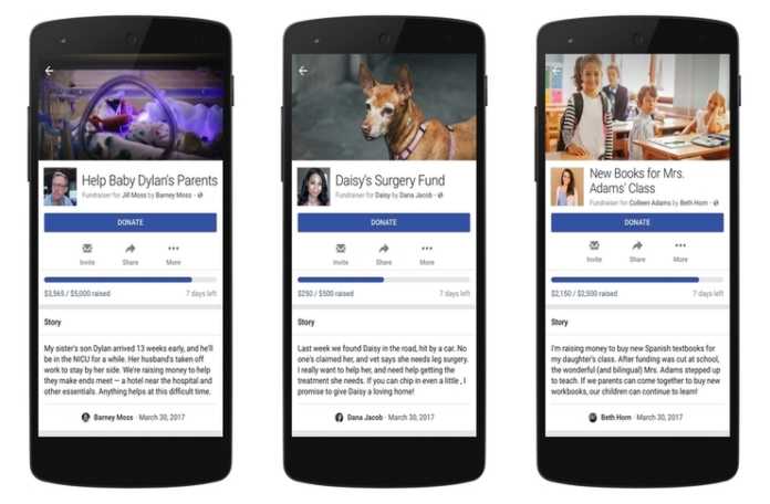 Facebook geçen yıl firmanın onayladığı 501c3 (Amerika’da kar amacı gütmeyen kuruluşlara verilen ulusal gelir kodu) kuruluşları için yardım toplama ekibi oluşturulmasına olanak sağlayan bir aracın duyurusunu yapmıştı. Hatta bu yardımları canlı videolara da taşımıştı. Facebook bugün itibariyle biraz daha şahsi sorunlara hitap edecek durumlar için para talebinde bulunma şansı veriyor. Firma, kişisel bağış toplama adı verilen bu yöntemle eğitim, sağlık, evcil hayvan sağlığı, kriz giderme, kişisel aciliyet ve bir cenaze ya da ölüm gibi masrafların karşılanmasına yönelik bağış almanıza olanak sağlayacak.