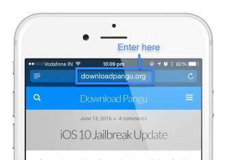Şimdi, downloadpangu.org web sitesini (resimde gösterildiği gibi) açın. Bu web sayfası, Safari’de Pangu iOS 10.2 uygulamasını indirmeniz için özel olarak tasarlanmıştır.