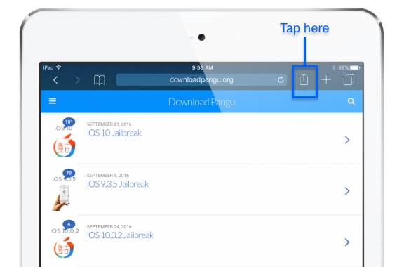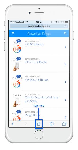 Burada iOS 10.2’de nasıl Pangu uygulaması yükleyebileceğinizi gösterdik. Bu uygulama, iOS 10.2 firmware yüklü 32 bit ve 64 bit iOS cihazlarında çalışır.