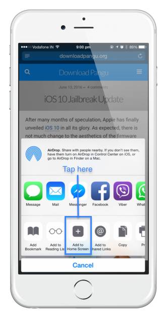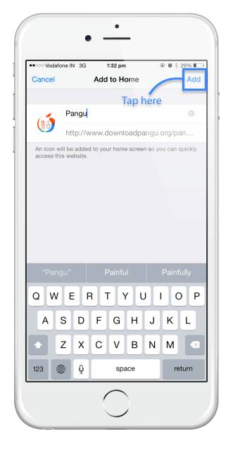 4. Şimdi devam etmek için ana ekrana ekle üzerine hafifçe dokunun.