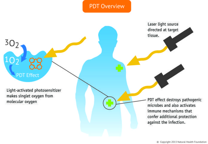 Fotodinamik terapi (PDT), fotosensör ya da fotosensör ajanı olarak adlandırılan bir tablet ve özel bir ışık tipi kullanılan tedavi biçimidir. Potosensörler belirli bir dalga boyundaki ışığa maruz kaldıklarında çevrelerinde bulunan hücreleri öldüren bir oksijen biçimi oluşturur.