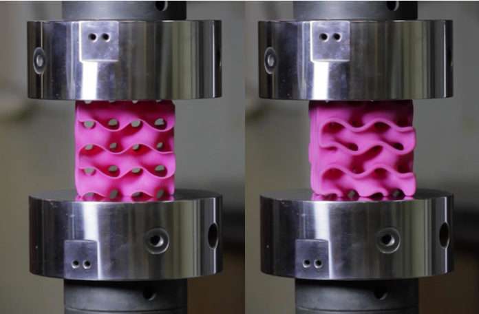 Araştırmacılar, materyalin süngerimsi yapısını temsil etmek için diatomik küpler bastı ve daha sonra sıkıştırma testlerine tabi tuttu.