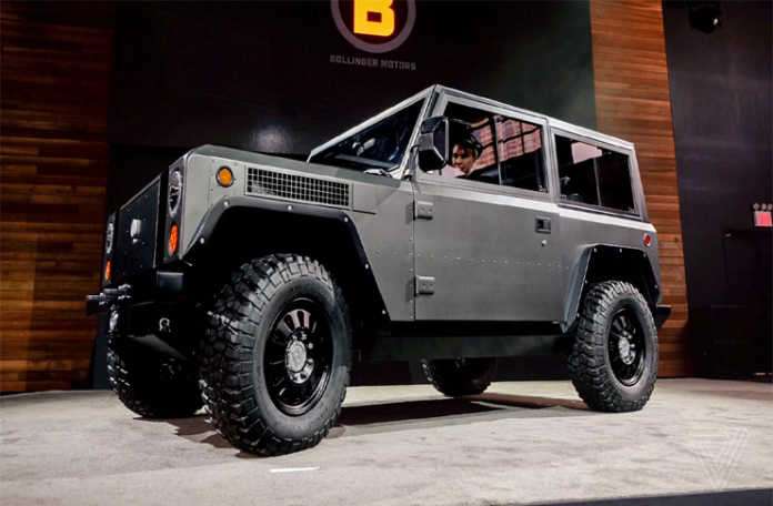 Bollinger Motors, yeni kurulmuş bir Amerikan elektrikli araba firması. Robert Bollinger, önceleri çiftçilikle uğraşan bir kişi, tarafından kurulmuş bir şirket. Manhattan Klasik Araba Kulübü sergisinde B1 ismi ile yayınladıkları, tamamı elektrikli ‘ spor maksatlı jeep ‘ olarak tanımlanan araç 350 km kullanım menzili ve 60.000 $ civarında bir fiyatıyla Escalade ve Land Rover Defender arasında bir klasmana sahip.