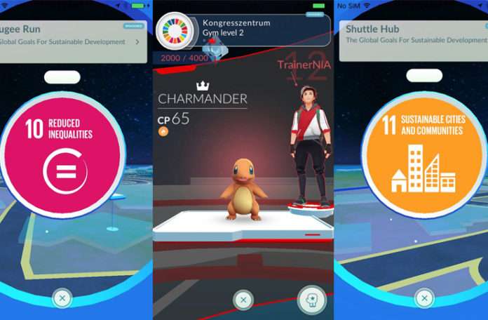 “Fakirliğe hayır” ve “Adaletsizliğe hayır” gibi küresel hedeflere dayanarak, 17 noktada PokeStop oluşturuldu.