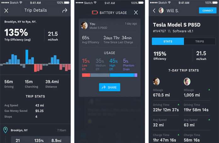 Teslab uygulaması akıllı telefonunuzun Tesla Model S veya Model X ile bağlantı kurmanısını sağlıyor. Bu sayede arabanız hakkında birçok bilgiye ulaşabiliyorsunuz. Bu bilgiler arasında hızınız, frenlemeniz gibi detaylı başlıklar mevcut. Bu sayede aracınızın genel verimliliği hakkında detaylı bilgiye ulaşmanı mümkün oluyor. Uygula verimlilik bilgilerini harita ile entegre edebiliyor. Bu sayede bataryanızdan ne nerede ne kadar harcadığınızı anlamak çok kolay oluyor. Uygulama bununla da kalmıyor. İzlediğiniz yolda ne kadar enerji tükettiğinizi canlı olarak hesaplıyor ve dururken bataryanızdan ne kadar yediğinizi görebiliyorsunuz.